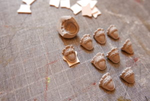 I used various techniques to recreate the sculptures in a small scale. Sculpted in polymer clay, made molds for series, but also a lot of paper and cardboard cutting.