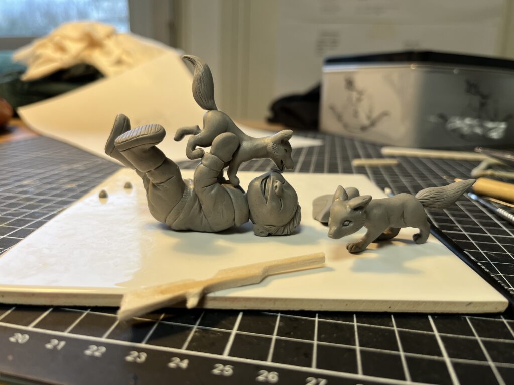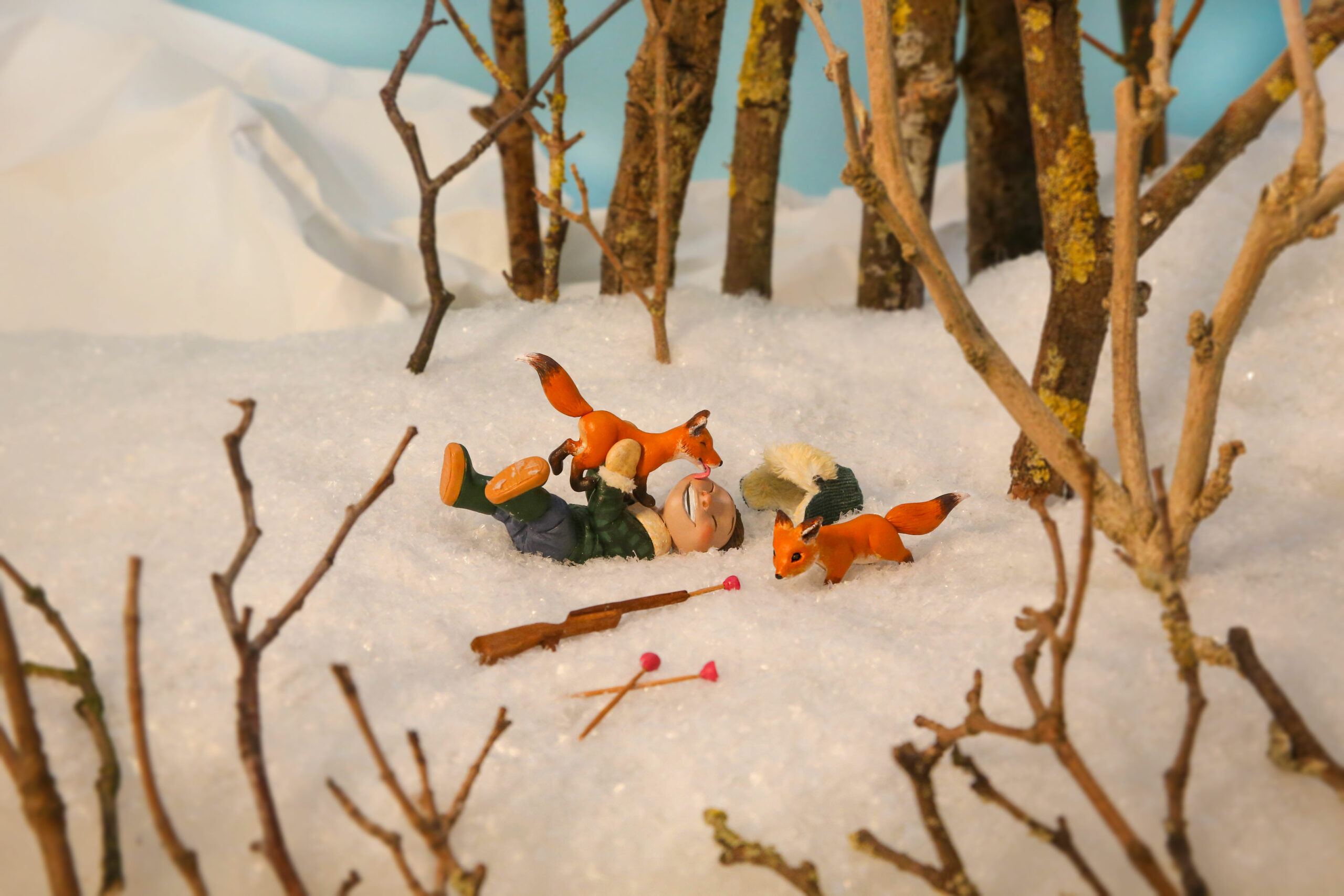 For this tangible illustration, I used polymer clay, acrylic paint, fabric, fake snow and real branches.